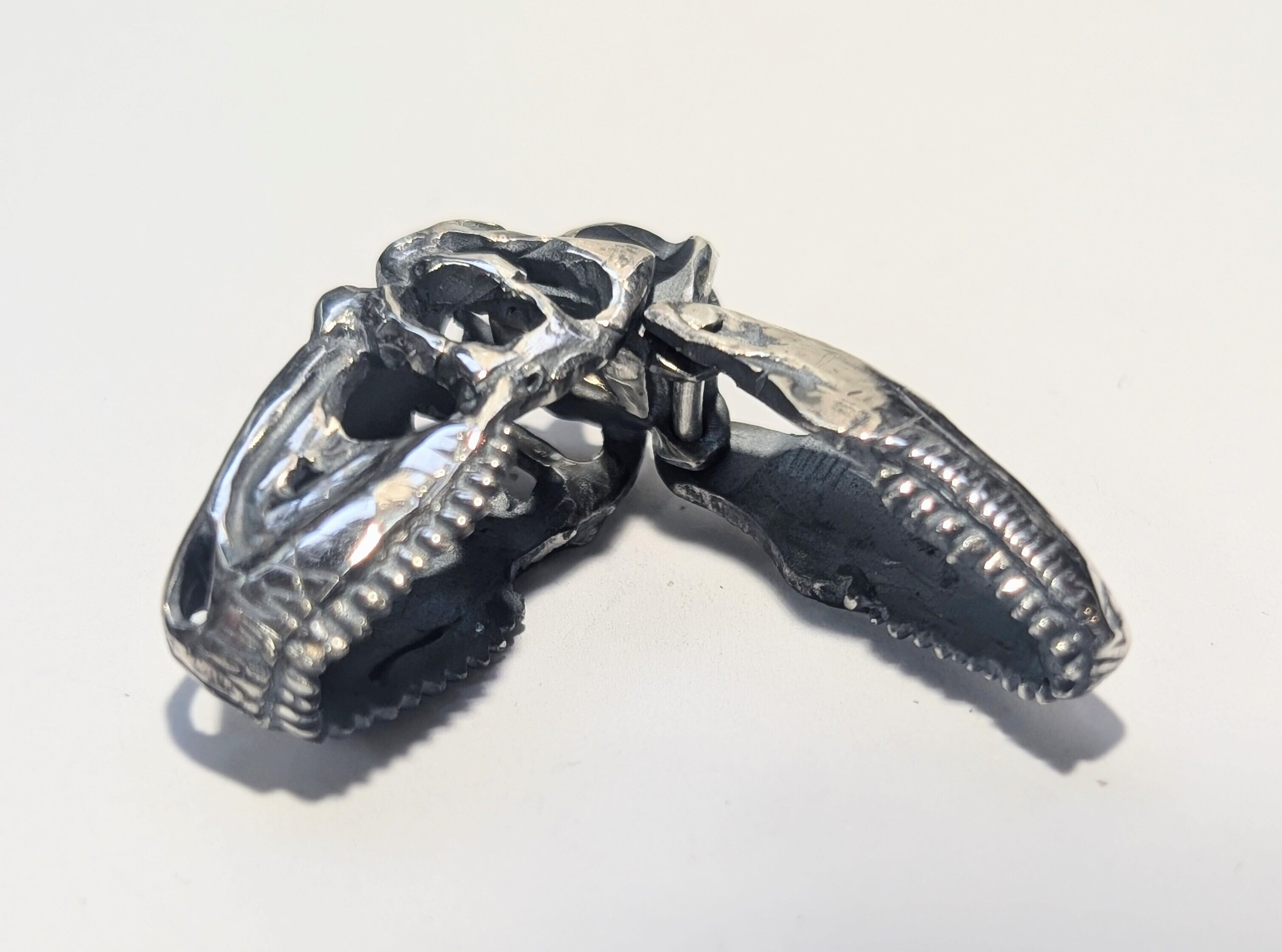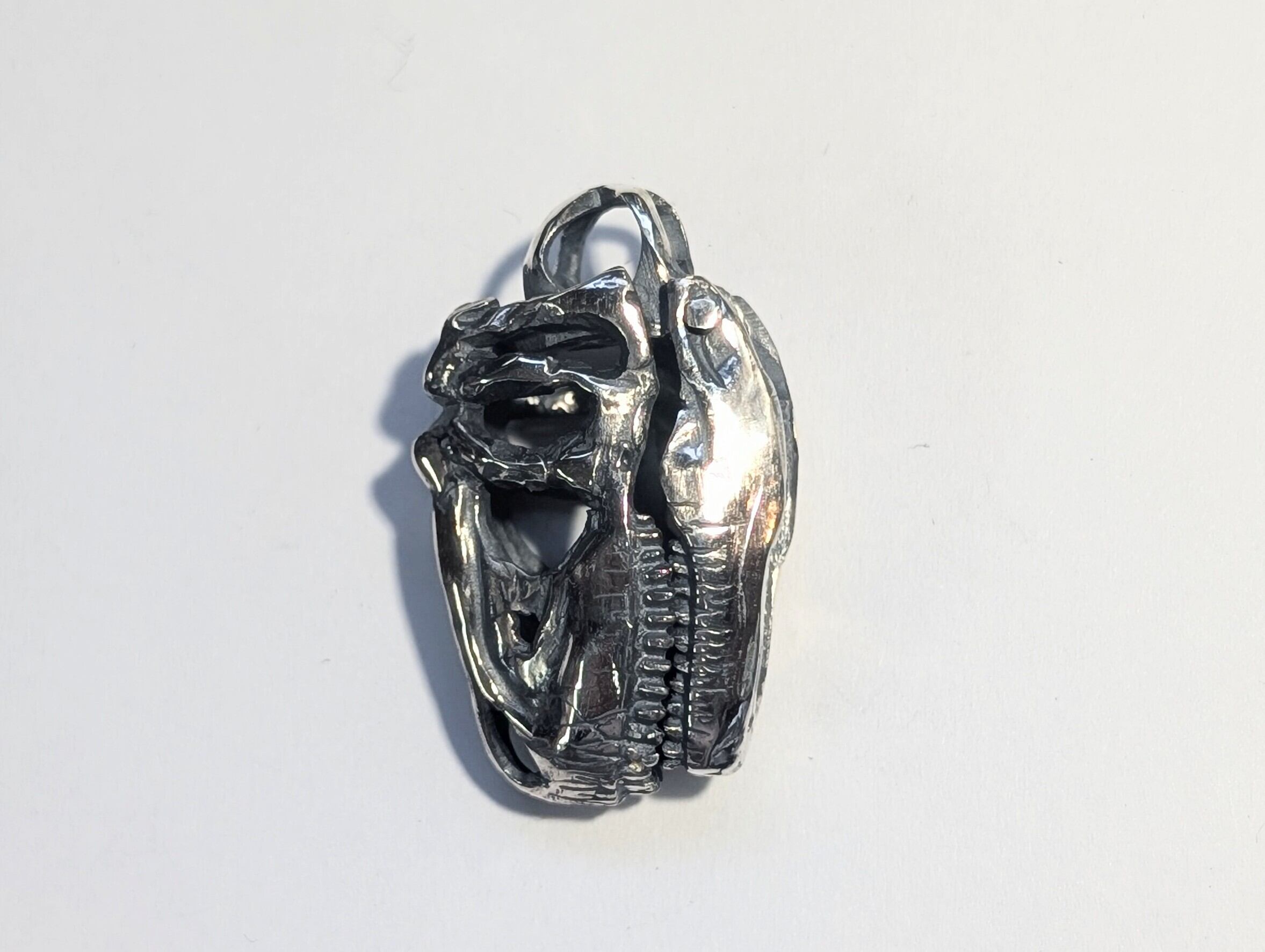 アロサウルスという肉食恐竜の頭骨をモチーフにしたペンダントトップです。
