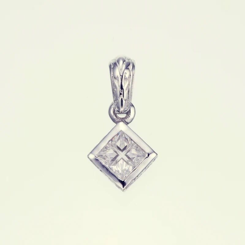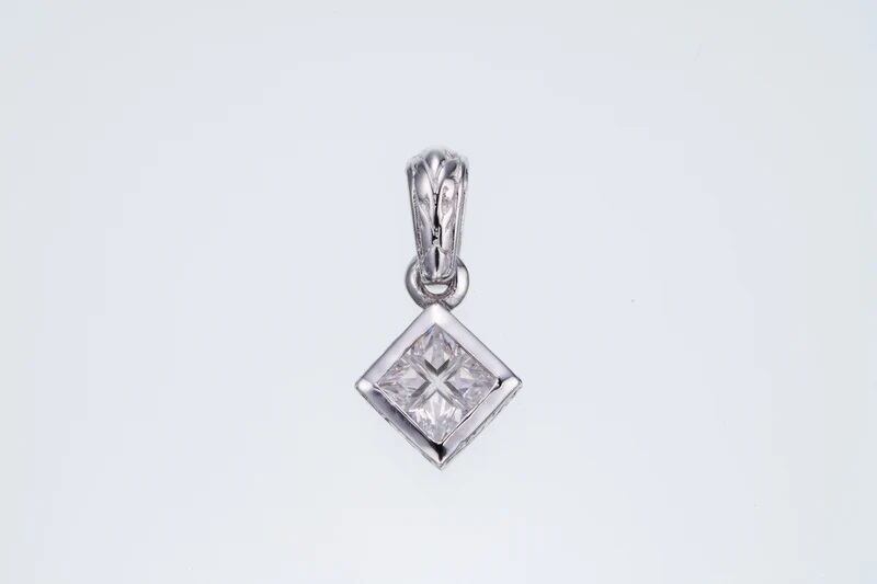 サイドとバチカンにもアイビー柄を彫り込み、4つの石が結合したかのようなスペシャルカットを施した正方形の「キュービックジルコニア」をセットしたペンダント。