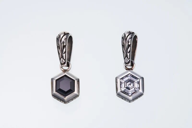 【ZOCALO】ジュエルド・アイビー・ヘキサゴン・ペンダントトップ L(ブラックCZ)